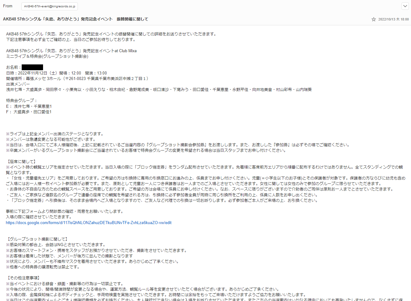 【アホスレ】AKB48「失恋、ありがとう」発売記念イベント(ミニライブ&グループショット撮影会)の振替イベントが糞イベ確定