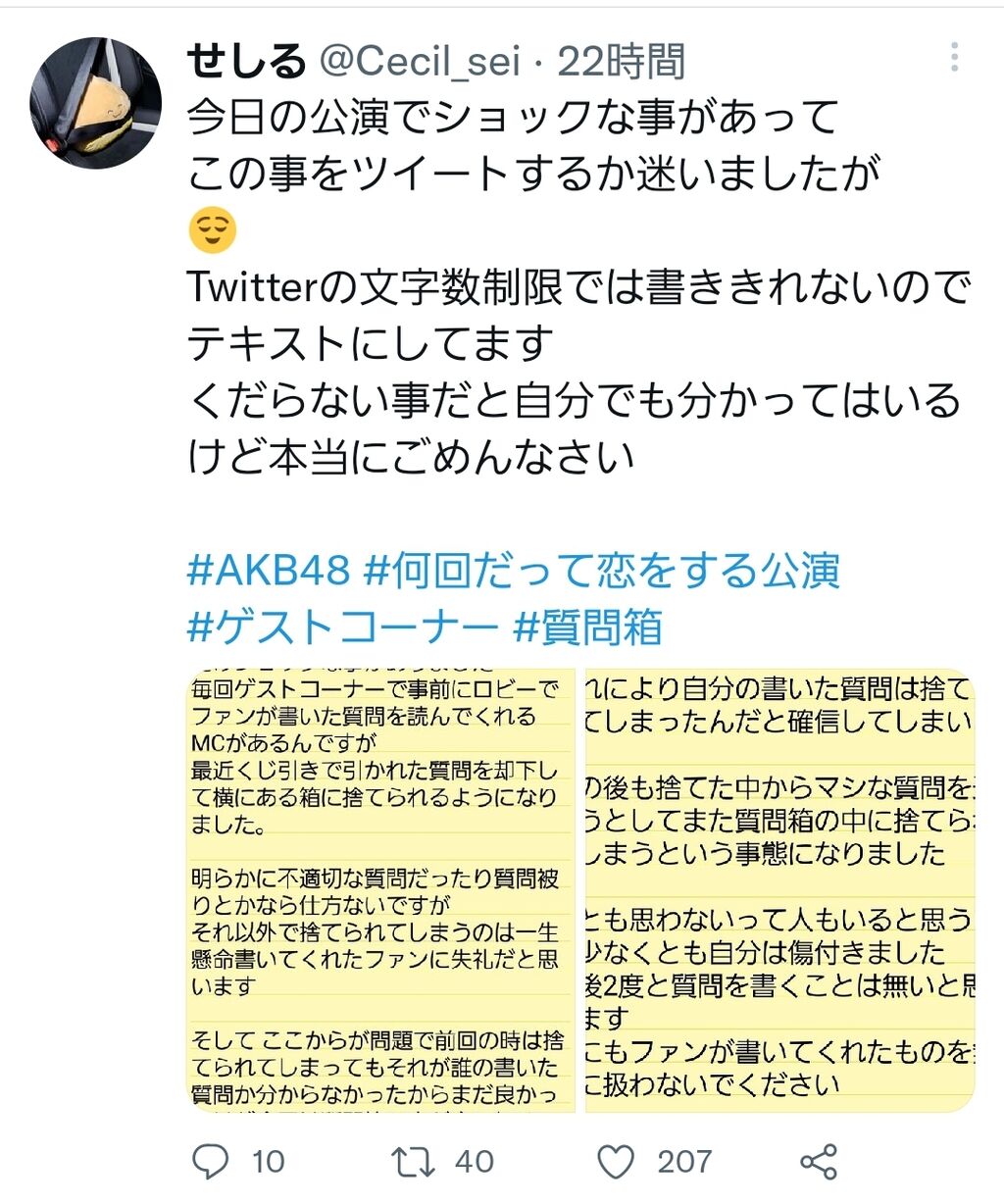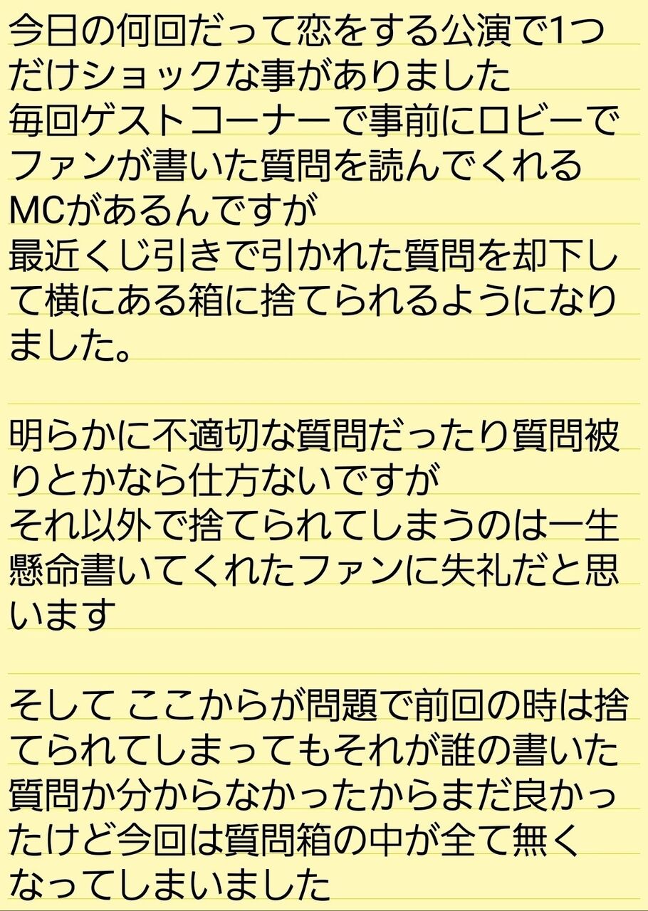 【悲報】劇場公演の質問箱の内容が検閲をされて捨てられていた模様…?