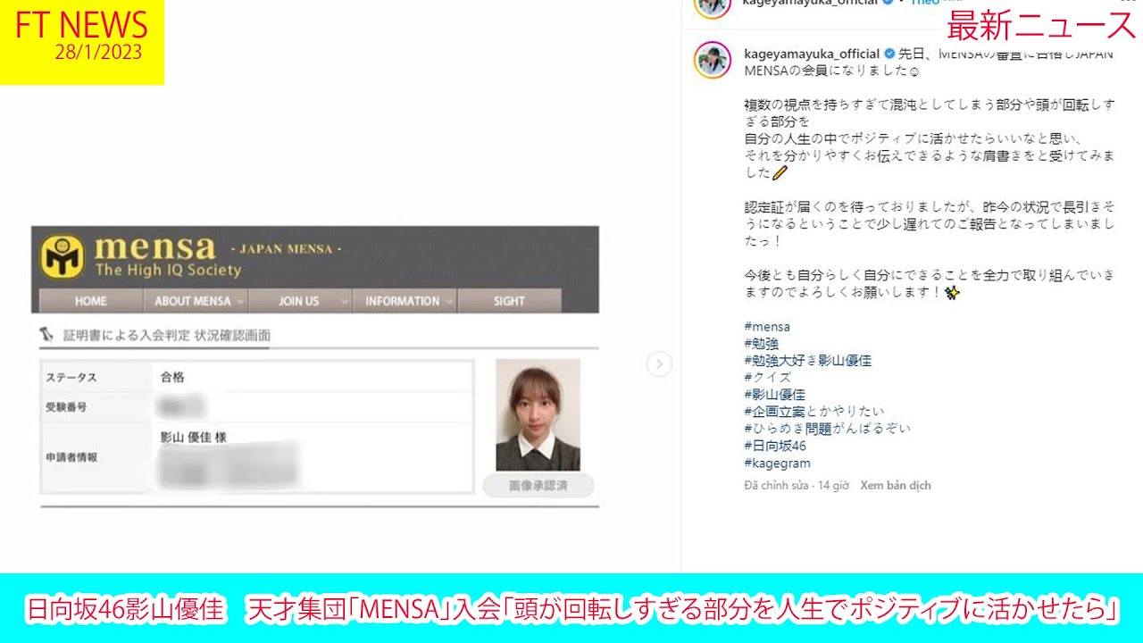 【日向坂46】影山優佳(21歳)さん、天才集団「MENSA」入会!