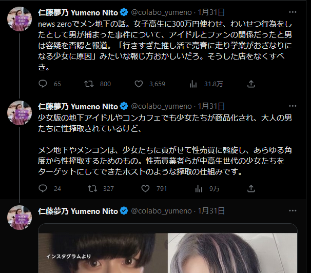 Colabo仁藤夢乃さん「女性アイドルは性搾取されている!男性アイドルは女性ファンを性搾取している!」