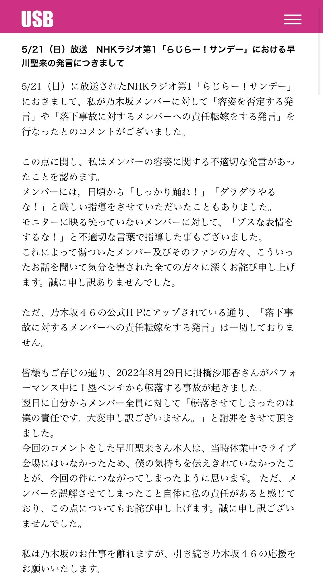 乃木坂から契約解除されたSEIGO氏、お気持ち表明