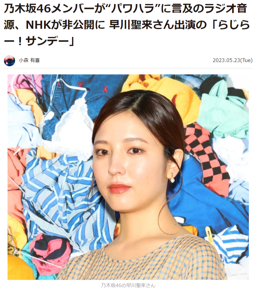 乃木坂46メンバーが“パワハラ”に言及のラジオ音源、NHKが非公開に 早川聖来さん出演の「らじらー!サンデー」