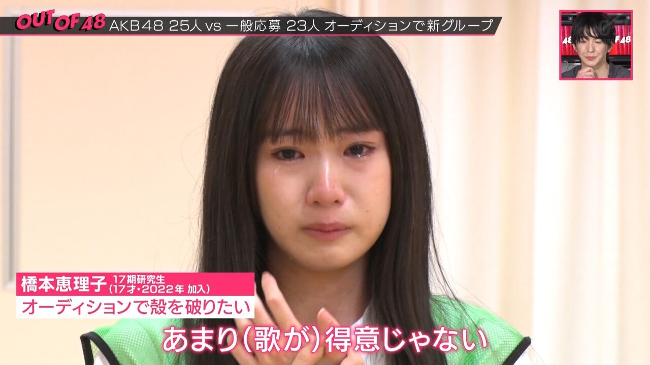 【悲報】17期橋本恵理子ちゃんがOO48歌唱審査中に泣き始めて止まる