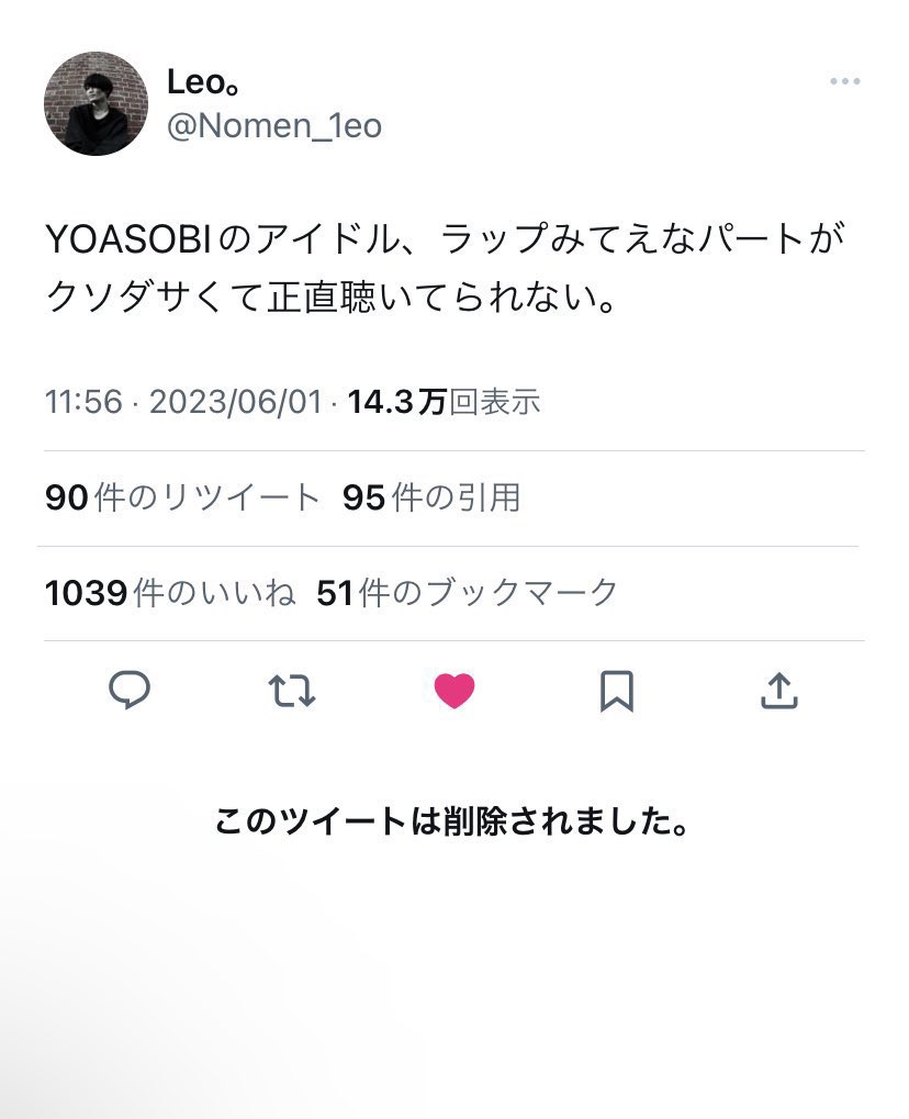 【悲報】識者「YOASOBIのアイドルって曲正直ダサいよな」→大炎上してツイート削除へ