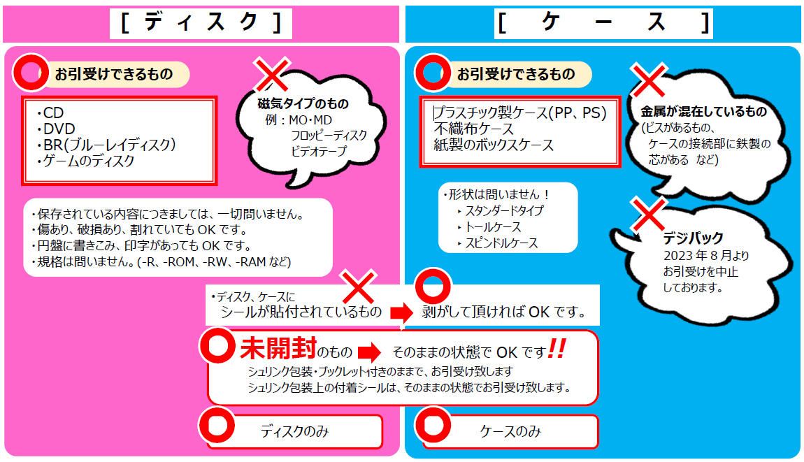 ディスク[ケース]を段ボールまたは、しっかりとした袋に入れて頂く。