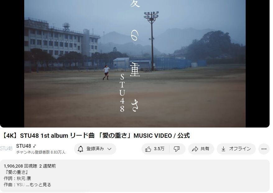 STU48「愛の重さ」の高評価数があと数時間でAKB48「カラコンウインク」を超える模様! 時代はSTU一強時代へ!