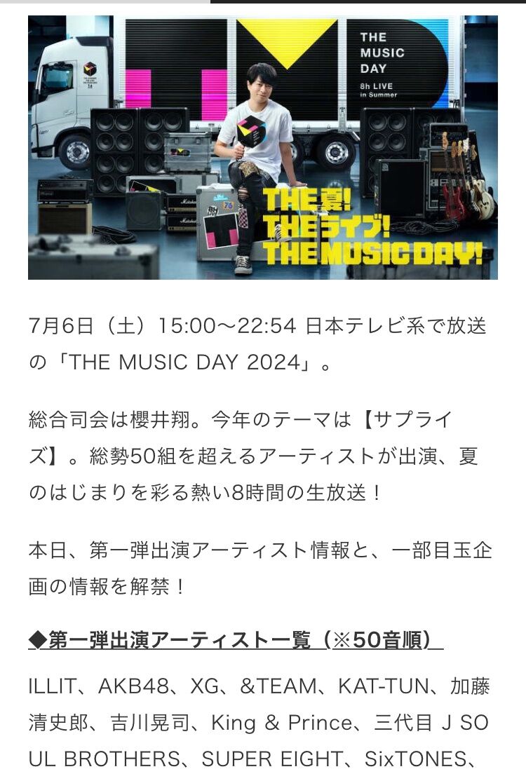 7/6・日テレ『THE MUSIC DAY 2024』前回と同じく AKBメンバー全員出演か? 7/6(土)← AKB48劇場 休館日