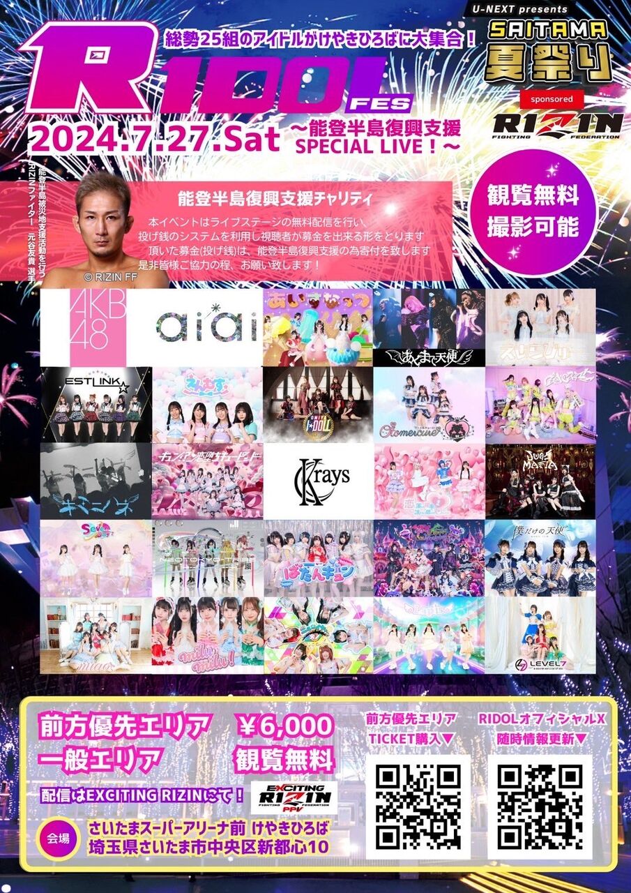【出演時間10分】AKB48が7/27開催「RIDOL FES~能登半島復興支援SPECIAL LIVE!~」に出演