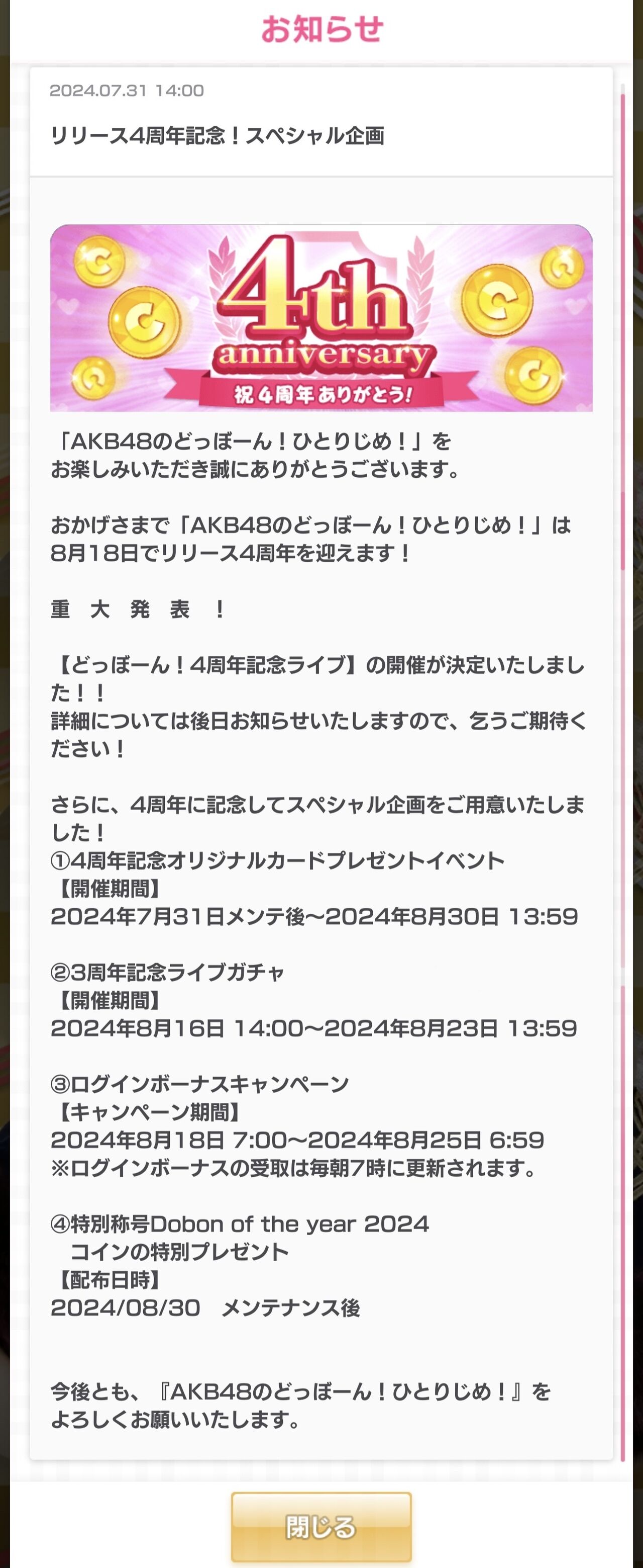 「どっぼーん!4周年記念ライブ」開催決定