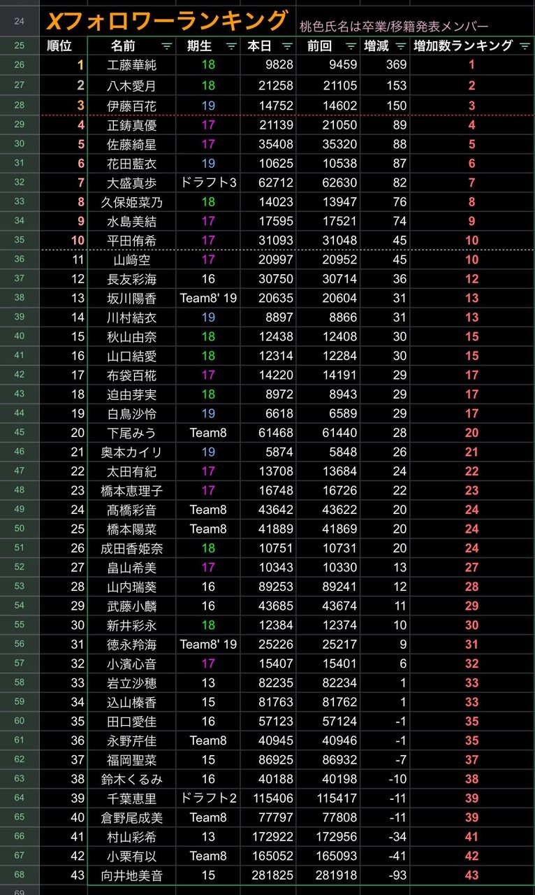 ⭐ 久保姫菜乃と布袋百椛の差が200人に迫る