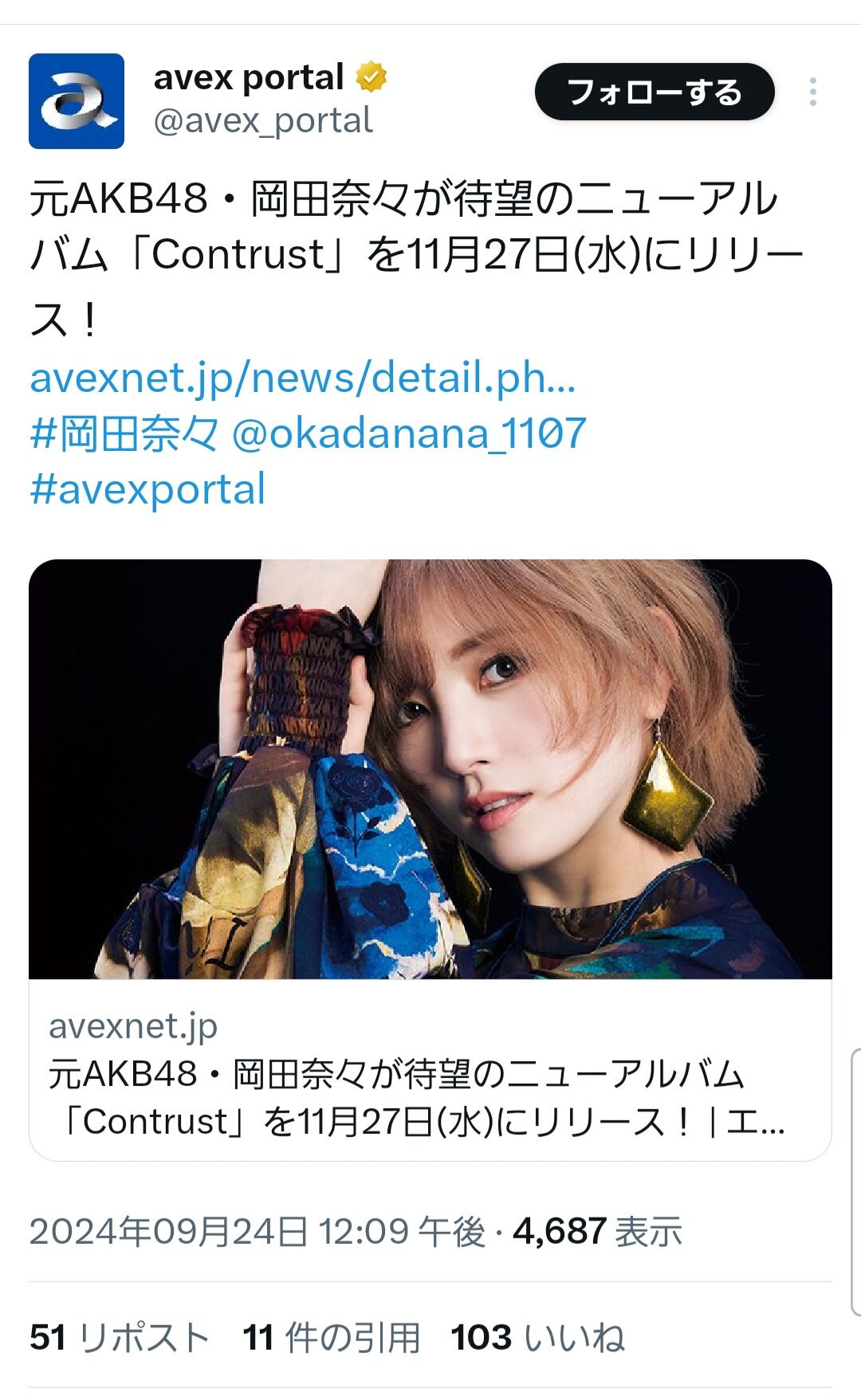 【朗報】岡田奈々さん、待望のニューアルバムを11/27(水)にリリース!