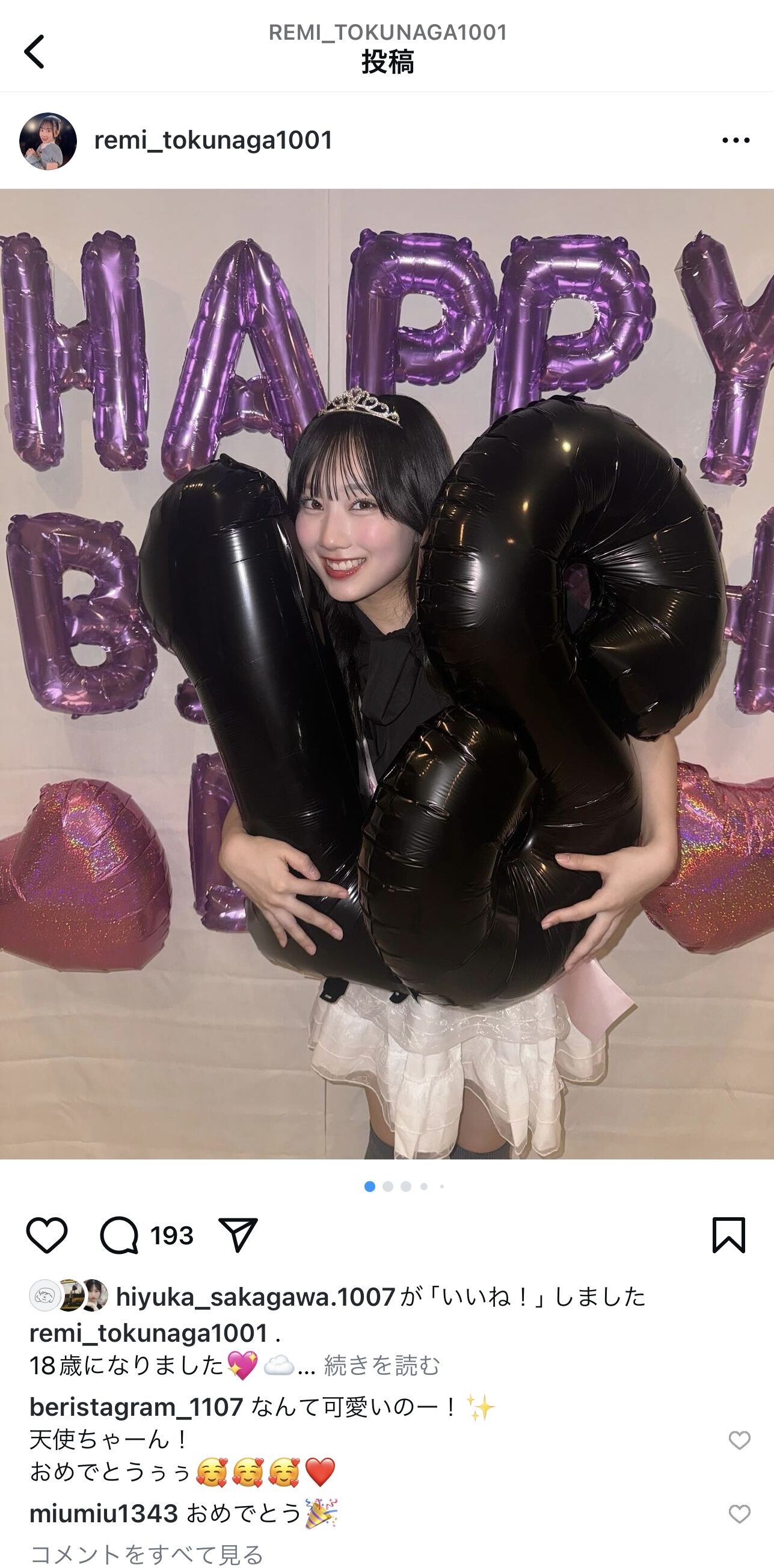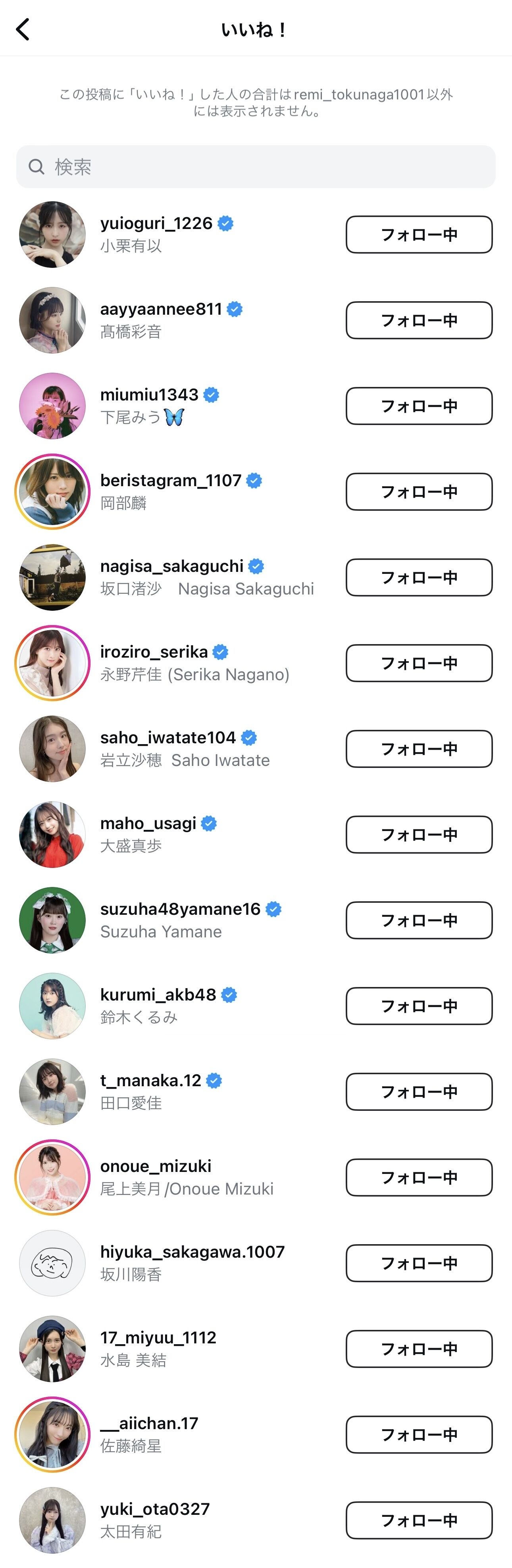 徳永羚海さんのインスタいいね欄にチーム8初期メン大集合