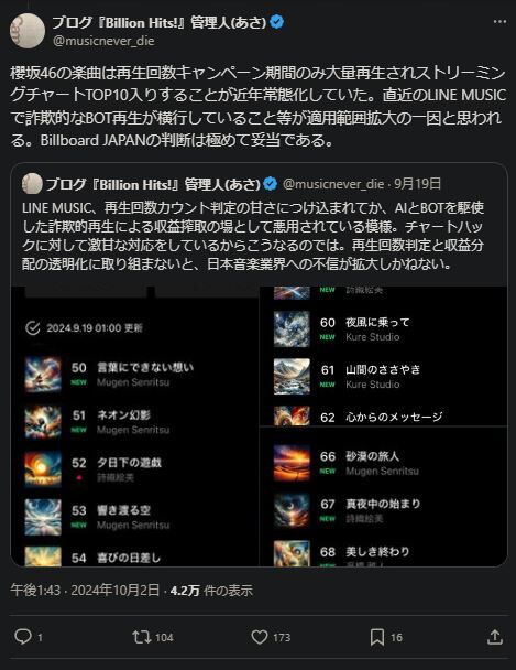 【闇深】櫻坂46がBOTで再生回数を不正水増し→ビルボードが不正対策wwwwwwwwwww