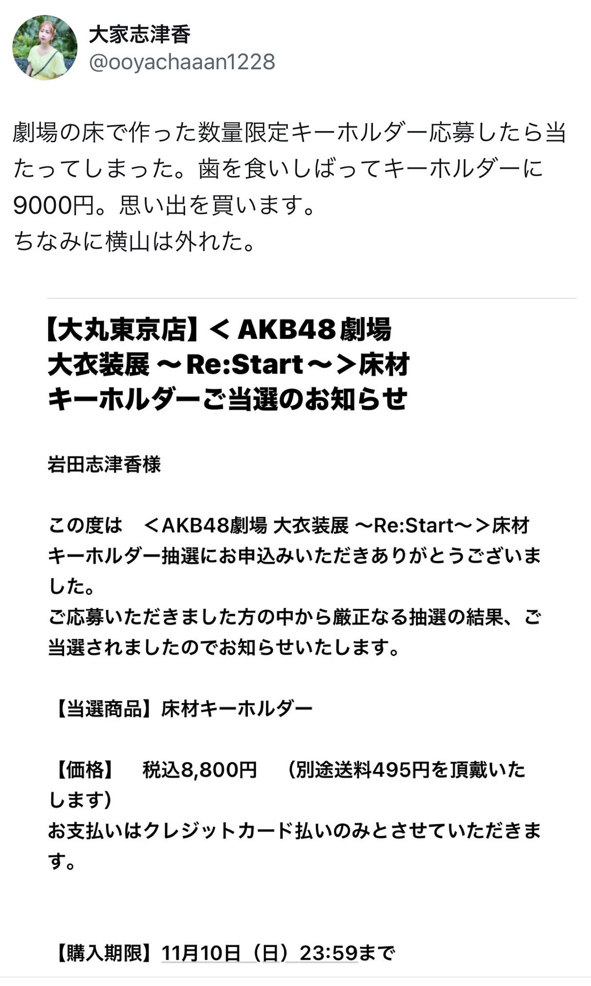 【朗報】AKB卒業生さんが劇場床材キーホルダーに当選してしまうwww