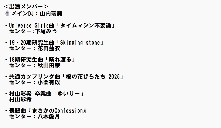 来週3/23(日)「柱NIGHT!with AKB48~65thシングル『まさかのConfession』カップリング全曲一斉解禁スペシャル!~」