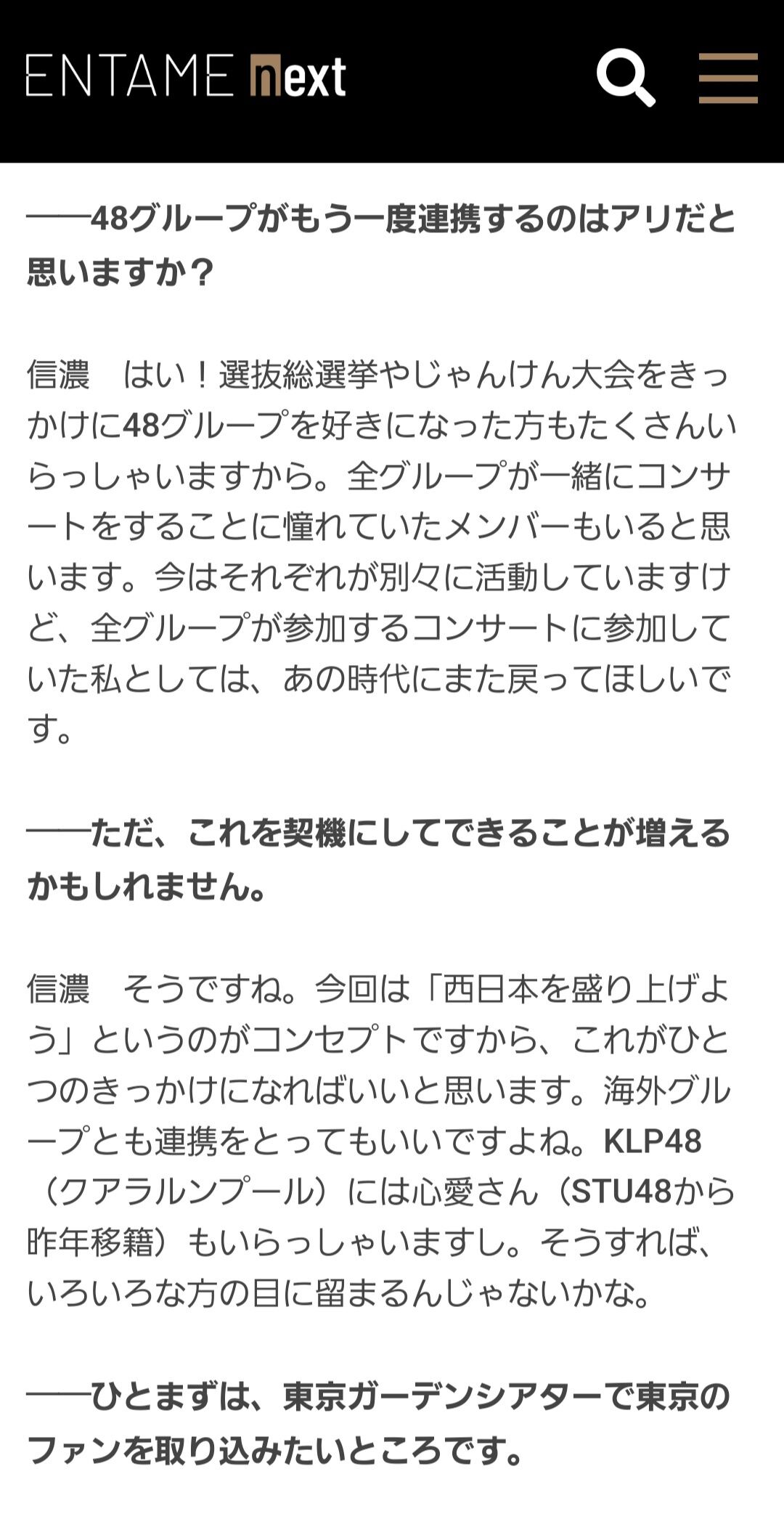信濃宙花「全グループが一緒にコンサートをしていた頃にまた戻ってほしい」