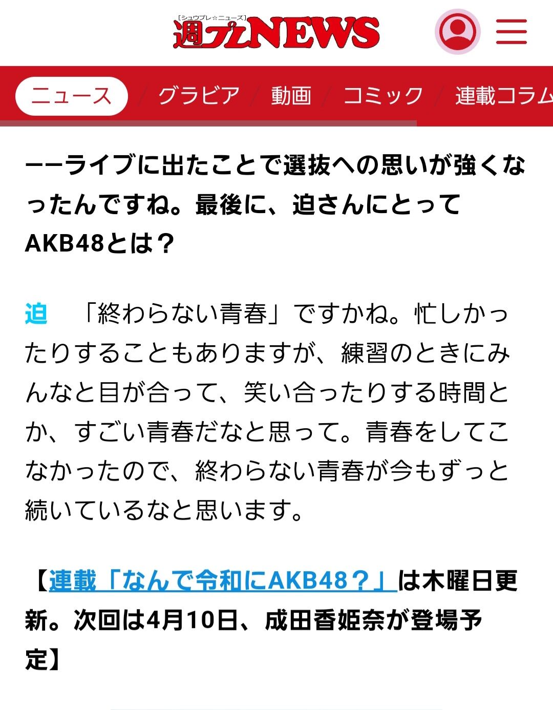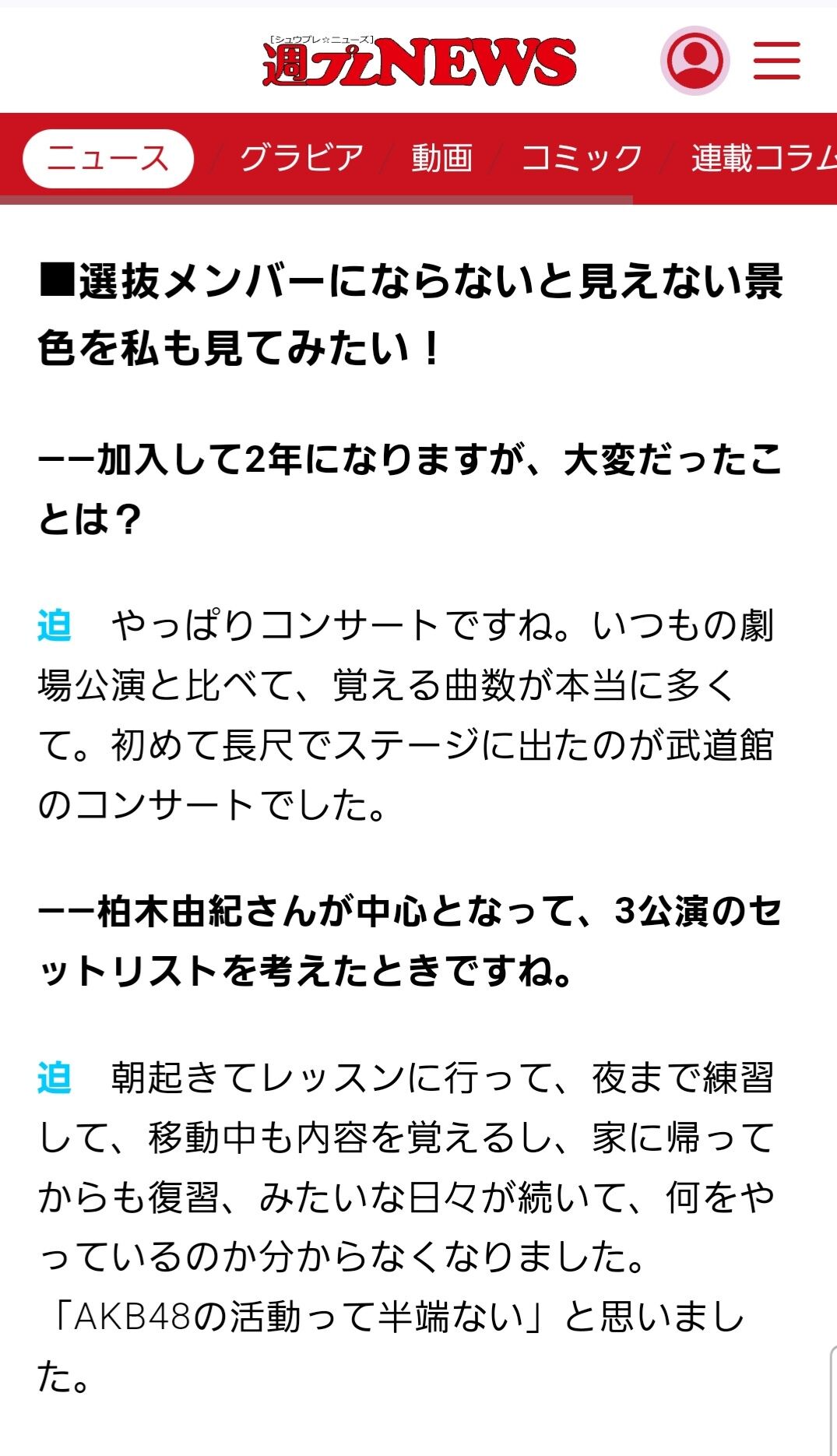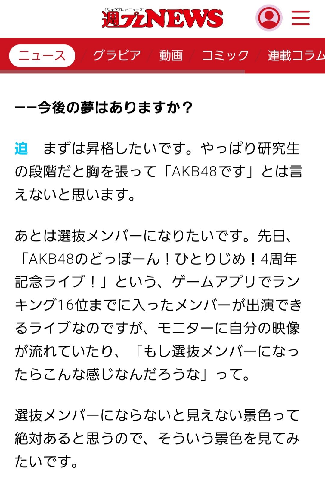迫由芽実「選抜メンバーにならないと見えない景色を私も見てみたい!」