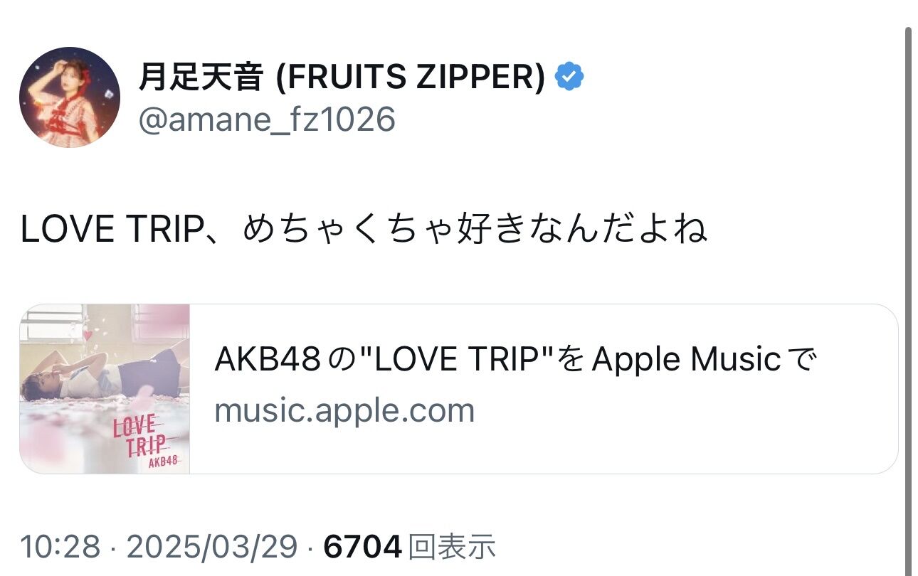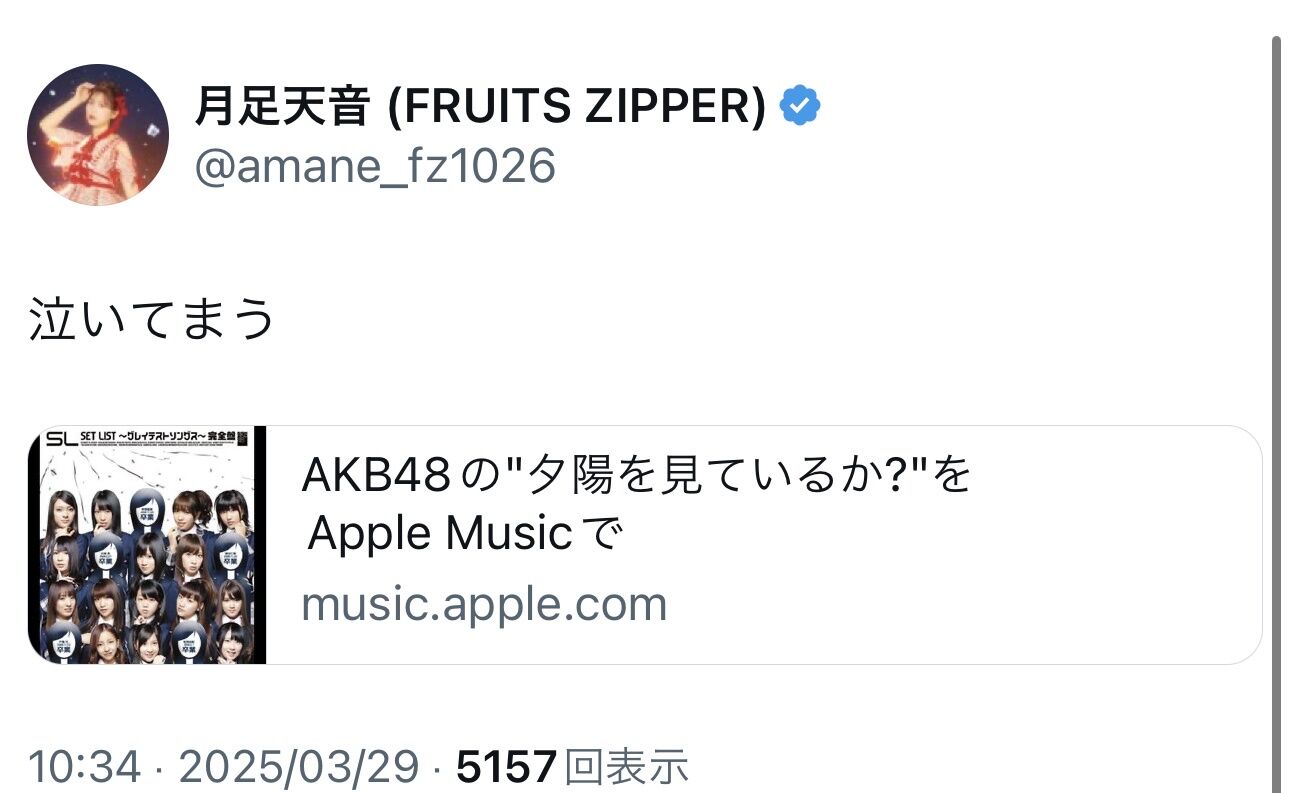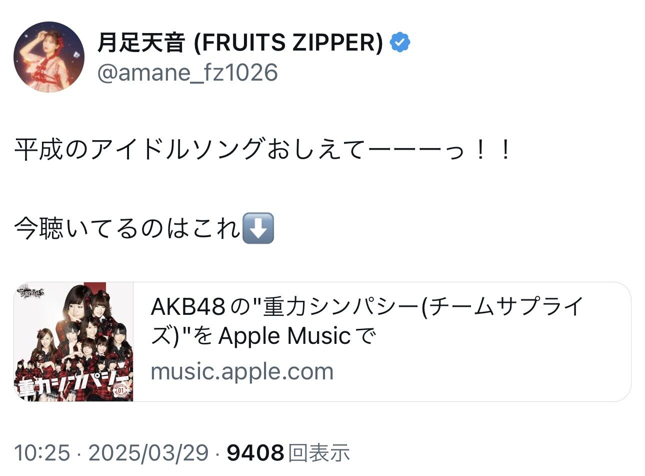FRUITS ZIPPER月足天音さんがAKBの楽曲を「平成のアイドルソング」呼ばわりしながら大宣伝してくださる