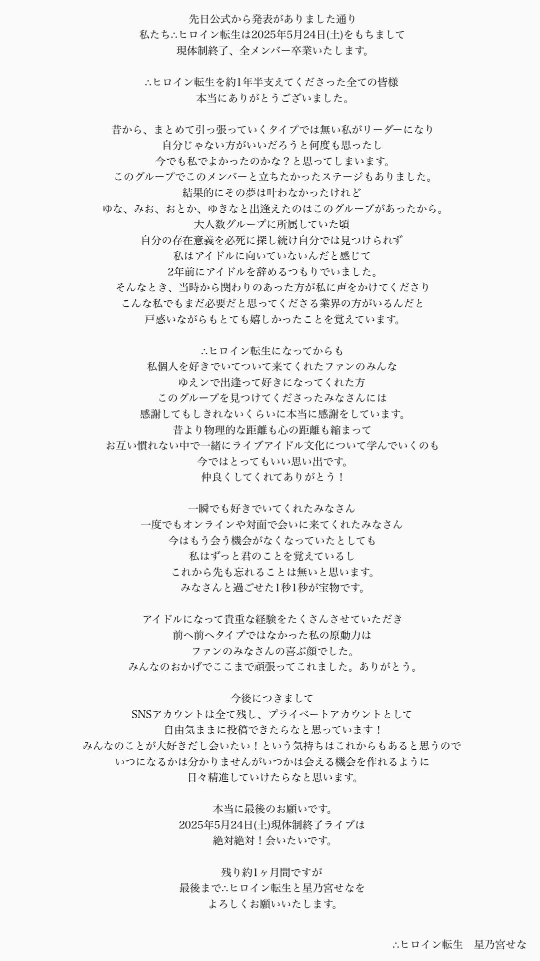 ∴ヒロイン転生星乃宮せなちゃん卒業発表