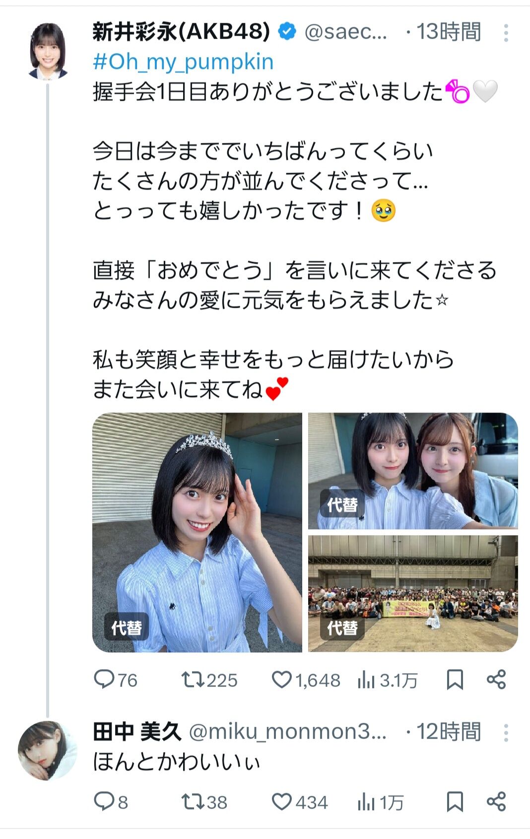 【朗報】田中美久「新井彩永ちゃんほんとかわいいぃ」