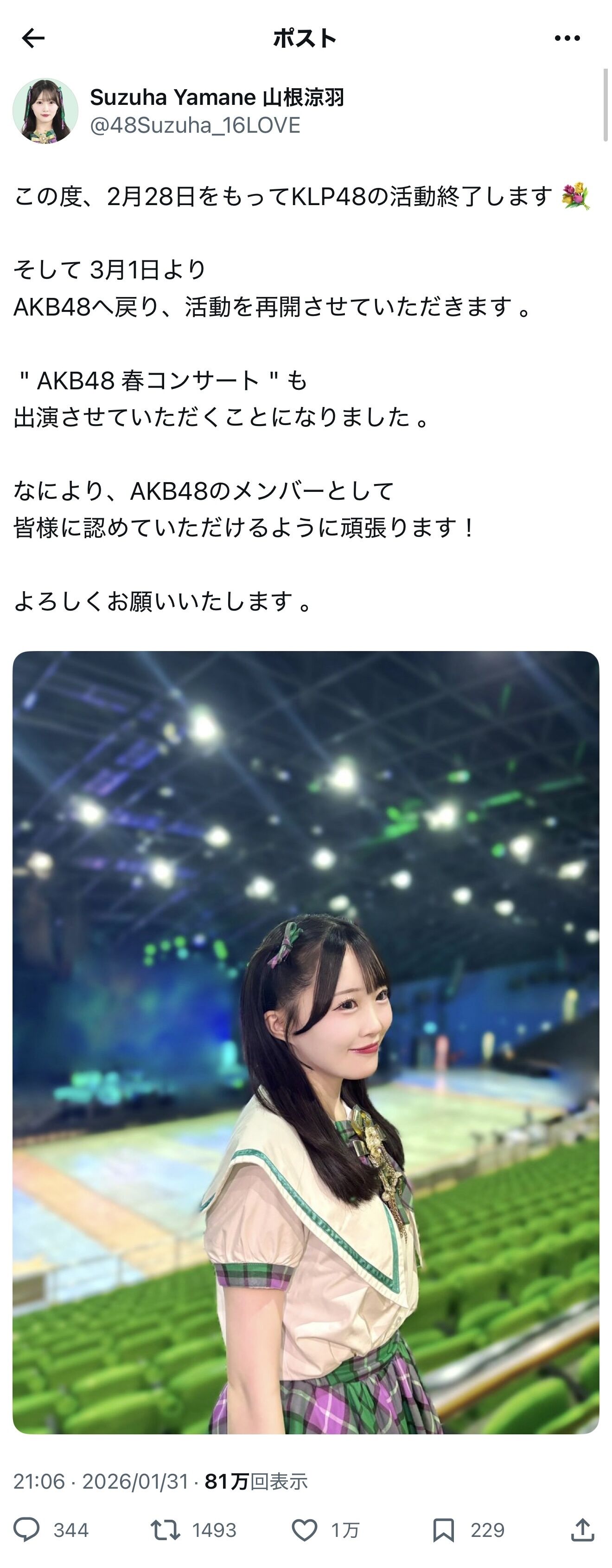 【胸糞】AKB運営さん、グループ全体のコンサートの宣伝ポストにオキニのゴリ押しメンのみタグ付けするという愚行