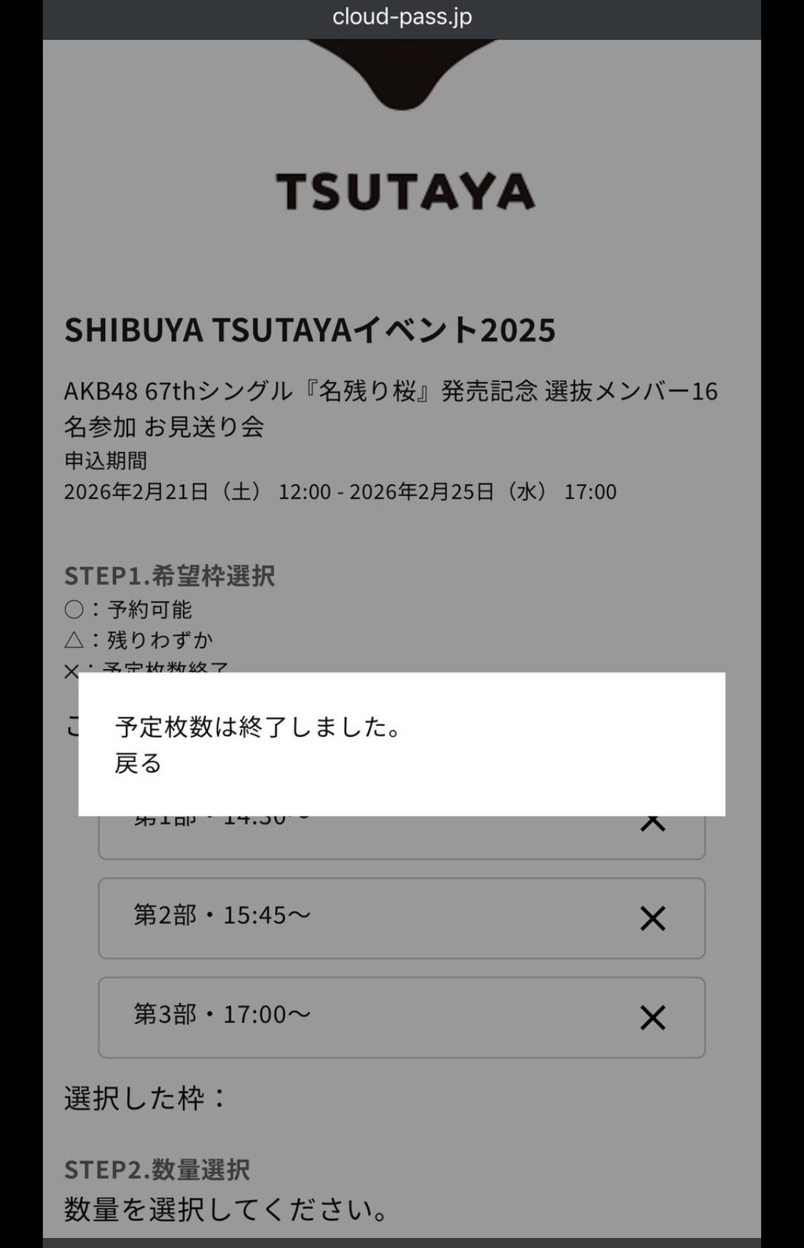 【速報】AKB48 『名残り桜』選抜メンバーお見送り会(渋谷) 販売開始6分でフル完売してしまうw w w w w w w