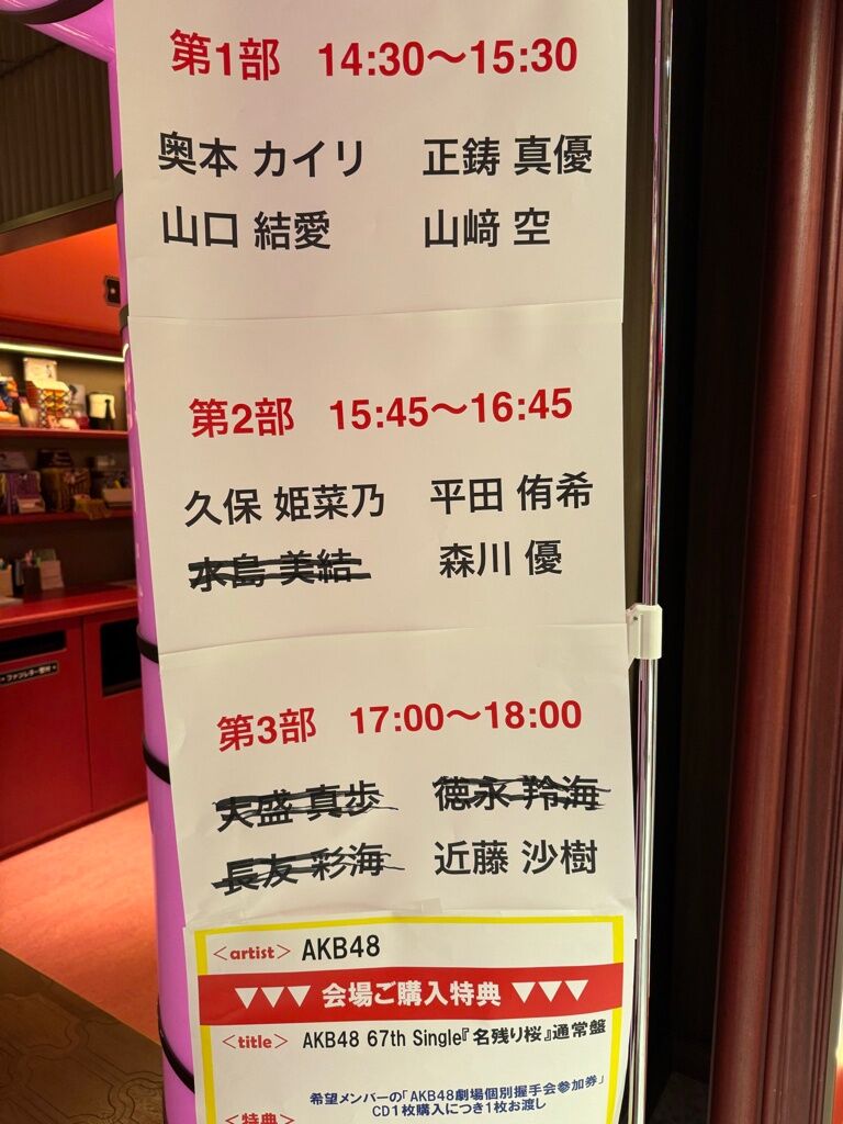 AKB劇場個別握手会であっさり完売してしまったメンバーがこちらです